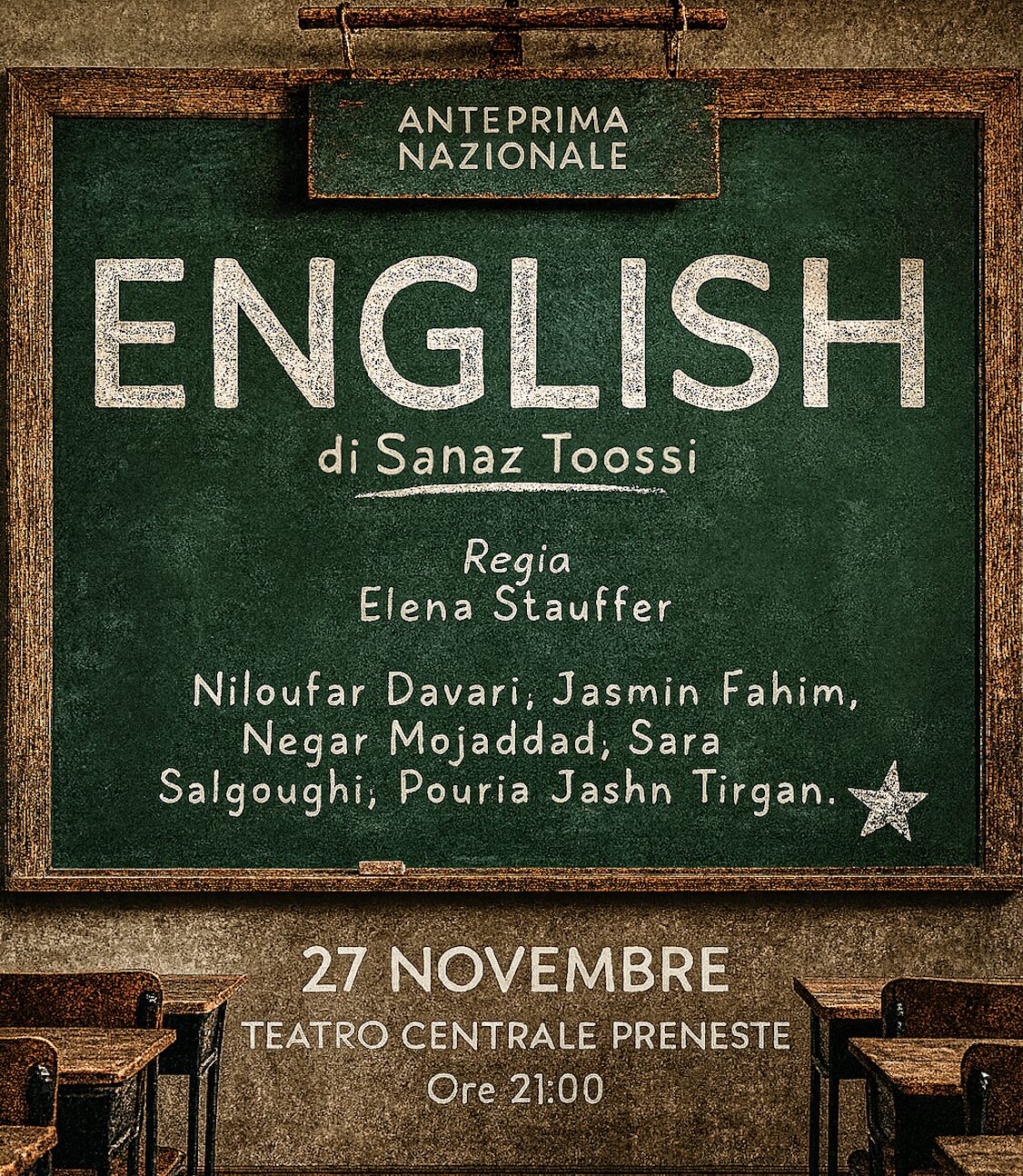Il 27 novembre alle 21.00 arriva a Roma ENGLISH di Sanaz Toossi, Premio Pulitzer 2023, in una nuova messa in scena diretta da Elena Stauffer e interpretata da Niloufar Davari, Jasmin Fahim, Negar Mojaddad, Sara Salgoughi, Pouria Jashn Tirgan.