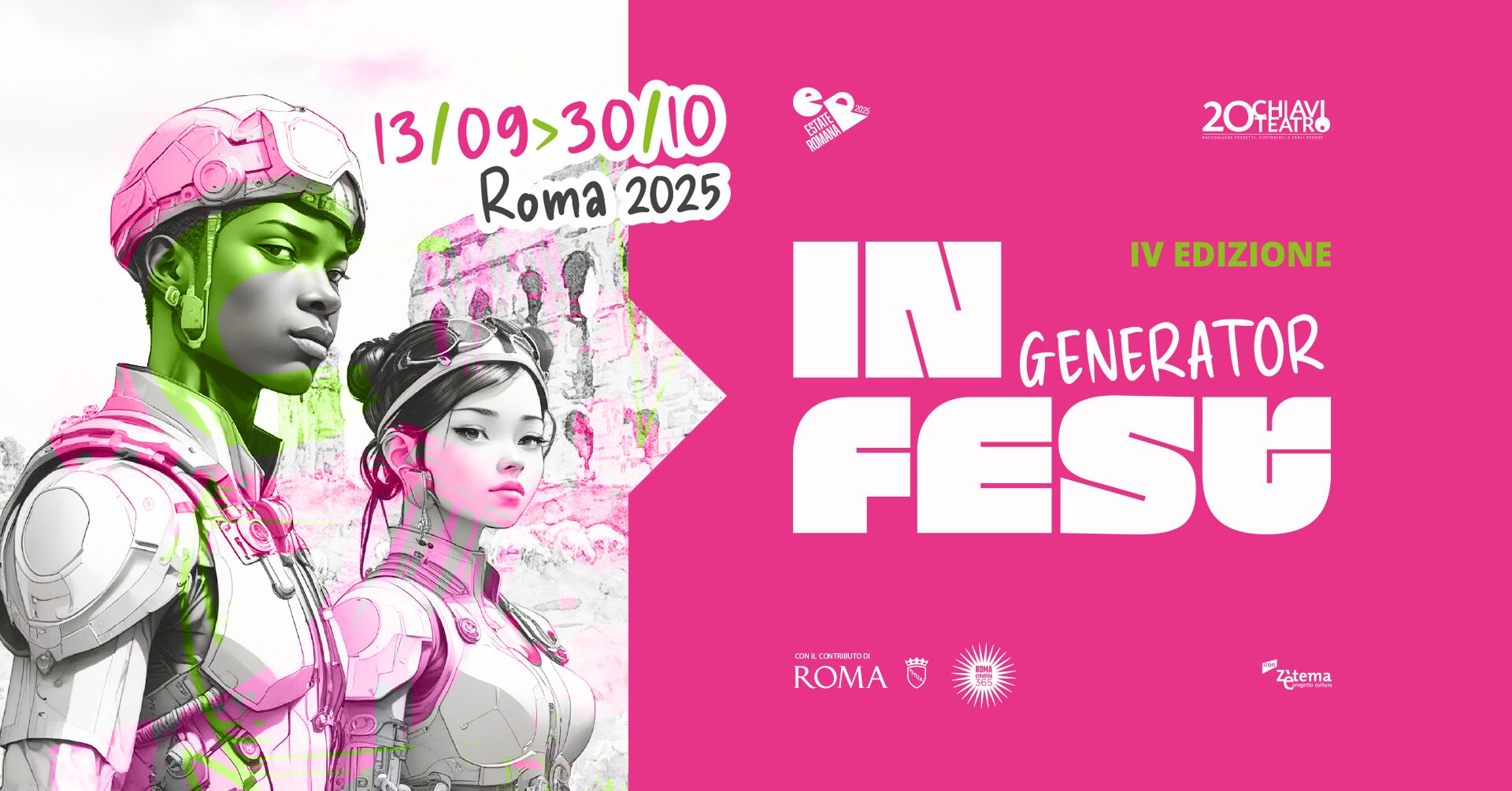 Il 4 ottobre 2025, dalle ore 18.00 alle 23.00, il Teatro Biblioteca Quarticciolo (Via Ostuni 8, Roma) accoglie una giornata speciale di IN FEST generator, progetto ideato e promosso da 20Chiavi Teatro. Il progetto è realizzato con il sostegno del Ministero della Cultura – Direzione Generale Spettacolo ed è vincitore dell’Avviso Pubblico Roma Creativa 365. Cultura tutto l’anno promosso da Roma Capitale -Assessorato alla Cultura in collaborazione con Zètema Progetto Cultura.